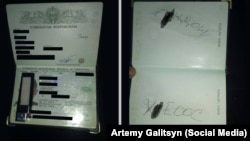 По словам пострадавшего, остановившие их люди потребовали денег. После отказа ему вернули паспорт с непристойными надписями, нанесенные шариковой ручкой на страницах документа.