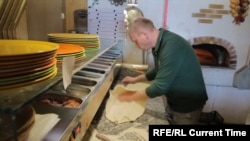 Для Валерия – владельца местной пицерии – солдаты НАТО стали источником неплохого заработка. Год назад он открыл в городке небольшую пиццерию. Особых прибылей не ждали, но неожиданно бизнес пошел в гору: "Мы просо проанализировали ситуацию, которая здесь есть. База работает и мы подумали, что это будет актуально".