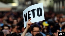 Участники требовали от президента страны Яноша Адера не подписывать закон о деятельности университетов, внесенный правительством Виктора Орбана две недели назад и во вторник принятый венгерским парламентом по ускоренной схеме.