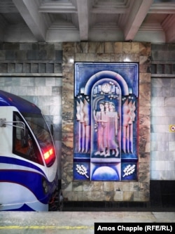 Панно, посвященное 2200-летию Ташкента, на станции метро "Ташкент".