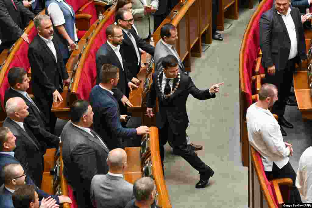 Владимир Зеленский 20 мая принес присягу президента Украины и получил печать президента и булаву: оба эти предмета он продемонстрировал присутствующим в зале депутатам Верховной Рады и другим гостям