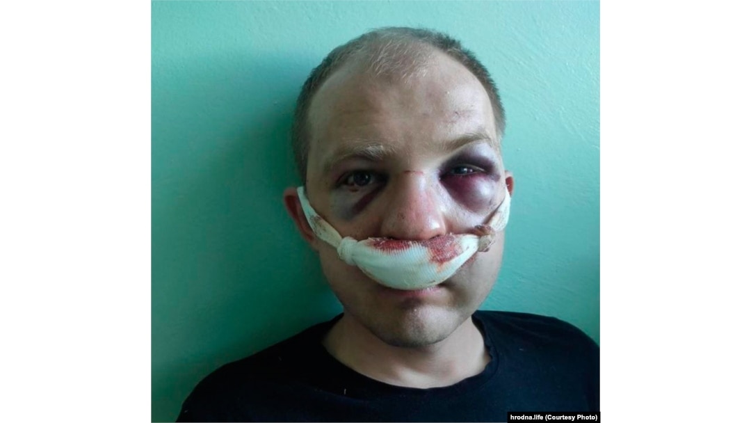 Алексей Лапа после избиения, Гродно, Беларусь. Фото: hrodna.life